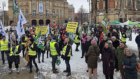 Die dritte Runde der Tarifverhandlungen für den hessischen Landesdienst hat begonnen. Zuvor setzten die Beschäftigten ein Zeichen.